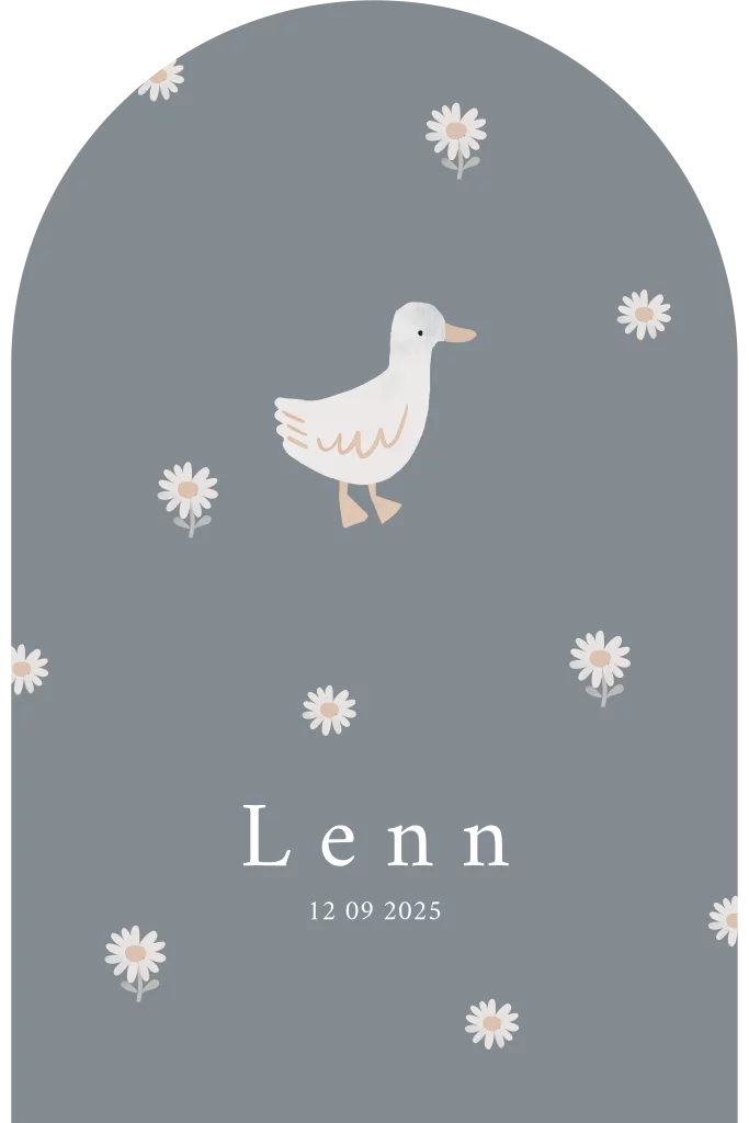 Geboortekaartje jongen met gansje en bloem in boogvorm