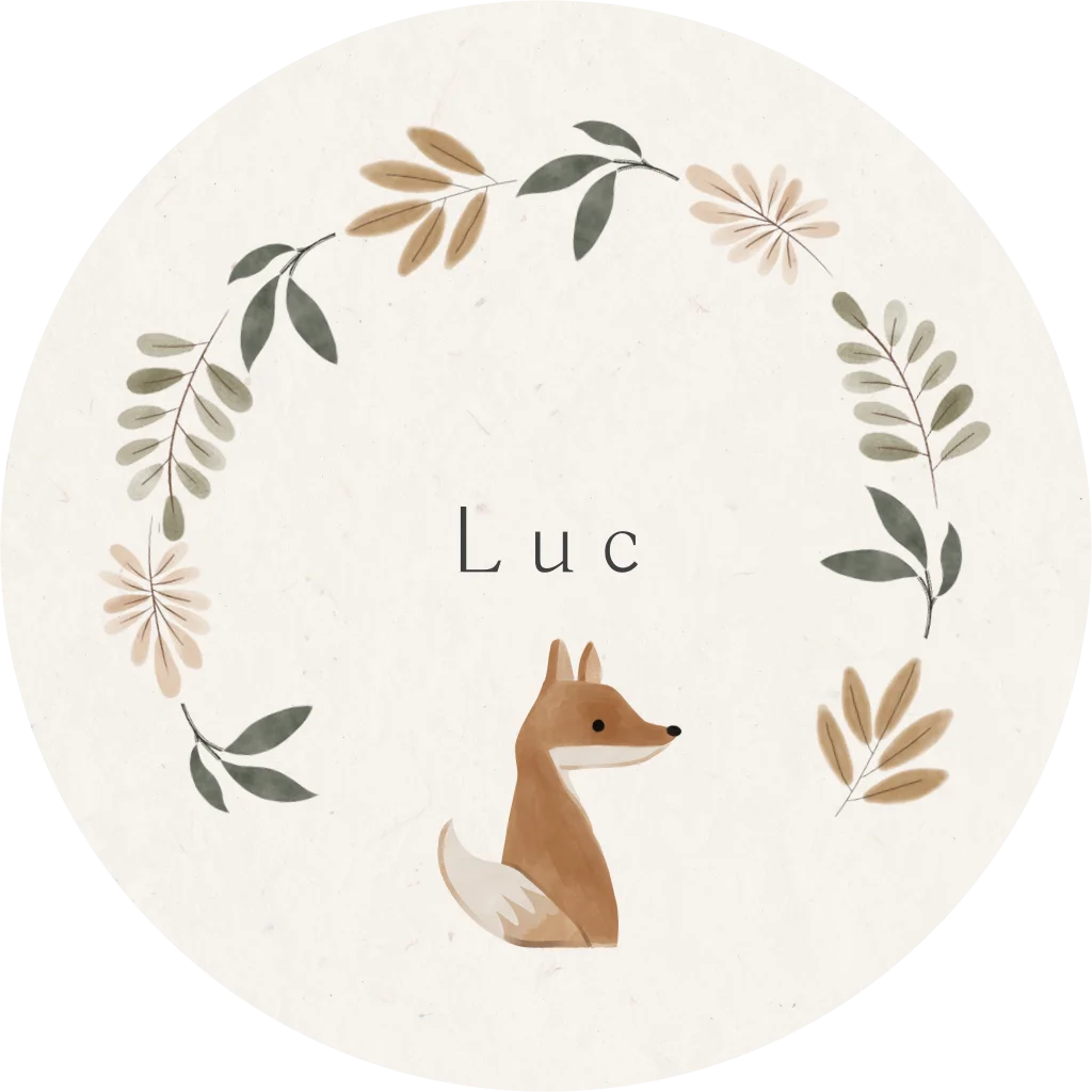 Bosdieren zijn de trend van nu, het vosje staat lief op dit geboortekaartje voor een jongen. Extra bijzonder door de ronde vorm.