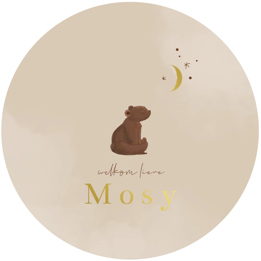 Bijzonder geboortekaartje voor een jongen met een originele vorm. De illustratie van een beertje en de goudfolie details zijn stoer en uniek. Je kan eenvoudig zelf het geboortekaartje aanpassen met een andere achtergrond en details.