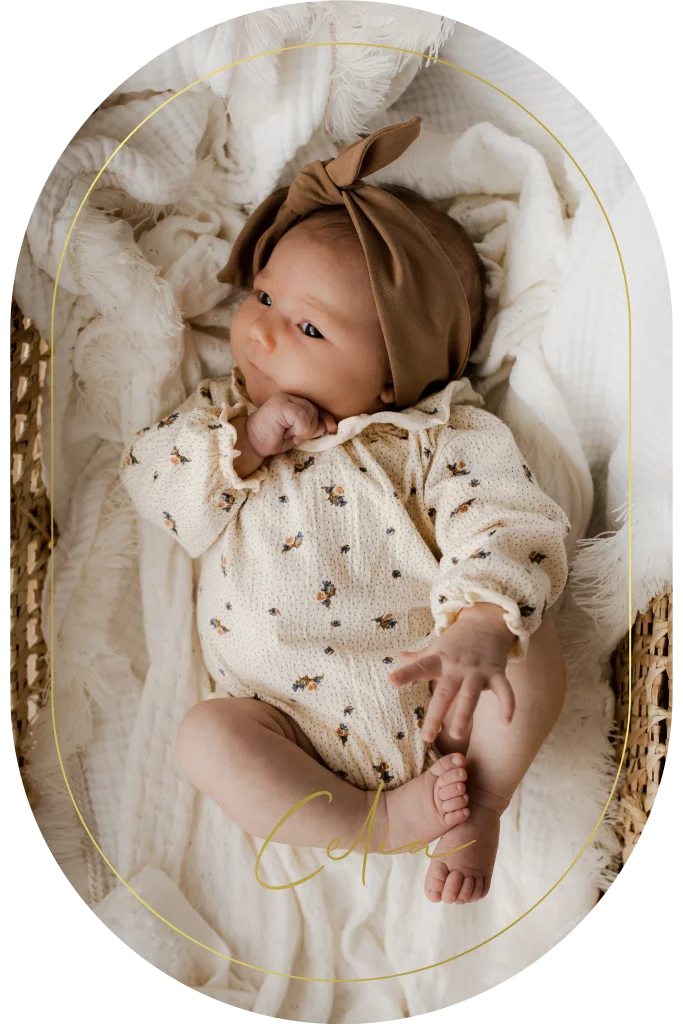 Uniek en bijzonder geboortekaartje voor een meisje met luxe goudfolie details. De ovale vorm van het kaartje heel mooi bij een foto van jullie dochter. Foto: @sannejonkerfotografie