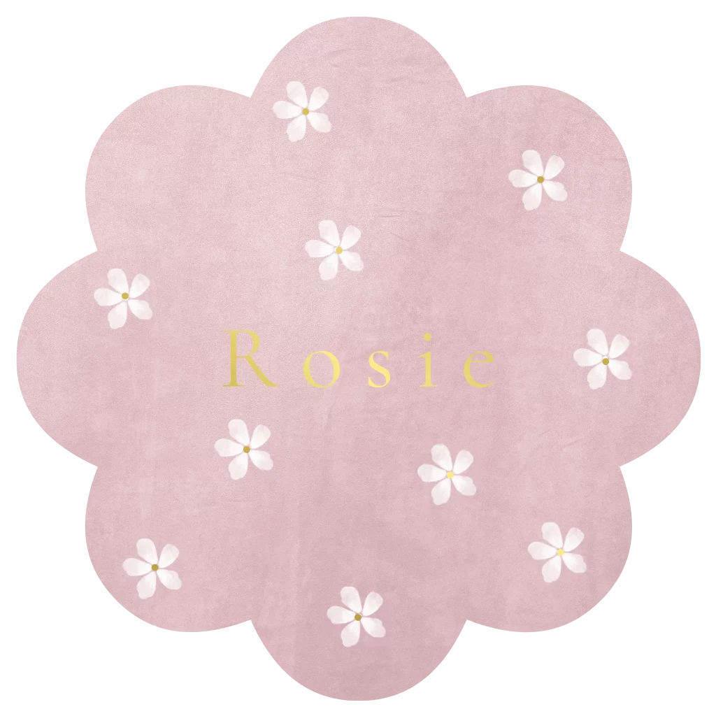 Origineel lief geboortekaartje voor een meisje in een bloem stansvorm met bloemetjes en goudfolie babynaam en details. Trend velvet achtergrond. Liever een ander formaat ? stuur ons een berichtje en wij zetten die klaar in je account.