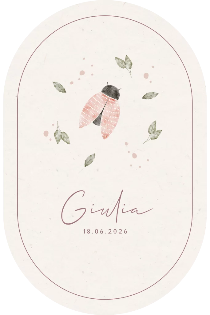 Mooi geboortekaartje voor een meisje met een lief kevertje en blaadjes. Perfect voor een lente kindje. neutraal geboortekaartje dat je eenvoudig kan aanpassen in de online editor met illustraties uit de beeldbank en kleuren. Leuk met bijpassende sluitzegel en raambord.