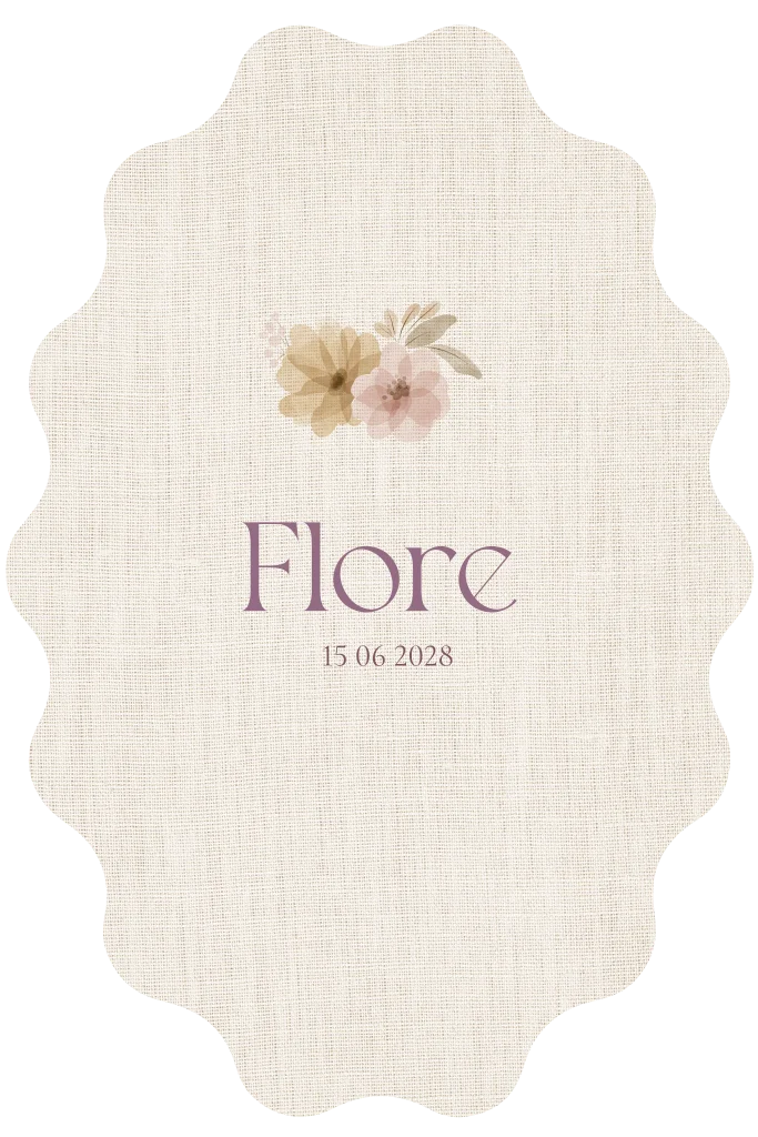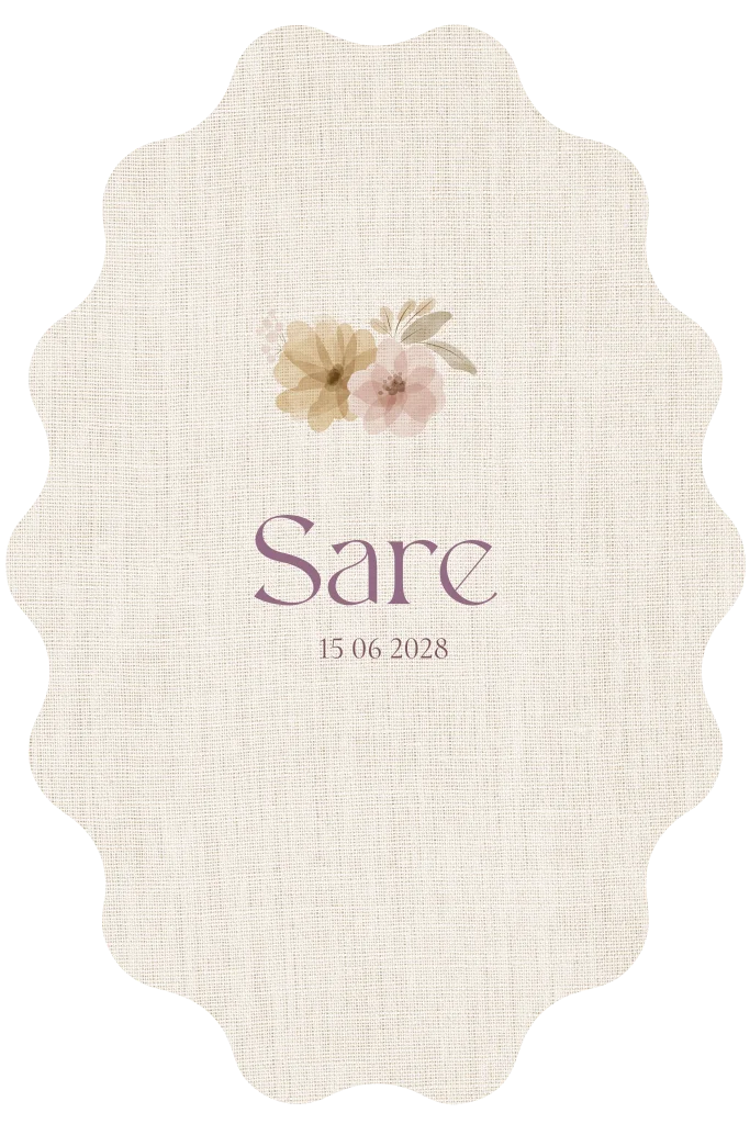 Dit klassieke geboortekaartje voor een meisje heeft een rustige en zachte uitstraling. De linnen achtergrond geeft het kaartje een tijdloos gevoel, terwijl de eenvoudige bloem zorgt voor een lief detail. De originele vorm maakt het ontwerp net even anders en laat het kaartje extra opvallen. Een rustig en liefdevol kaartje voor jullie dochtertje.