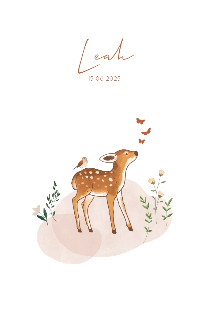 Bijzonder geboortekaartje voor een meisje met een originele stansvorm. Heel lief met de trend bosdieren, zoals een hertje en een vogeltje. Je kan eenvoudig zelf het kaartje aanpassen met illustraties van Zo Mooi uit de ontwerptool. Folie kan je ook toevoegen aan de stansvorm geboortekaartjes. Ook leuk als geboorteposter voor de babykamer. Heb je hulp of advies nodig? dat is kosteloos, dus stuur gerust een berichtje.