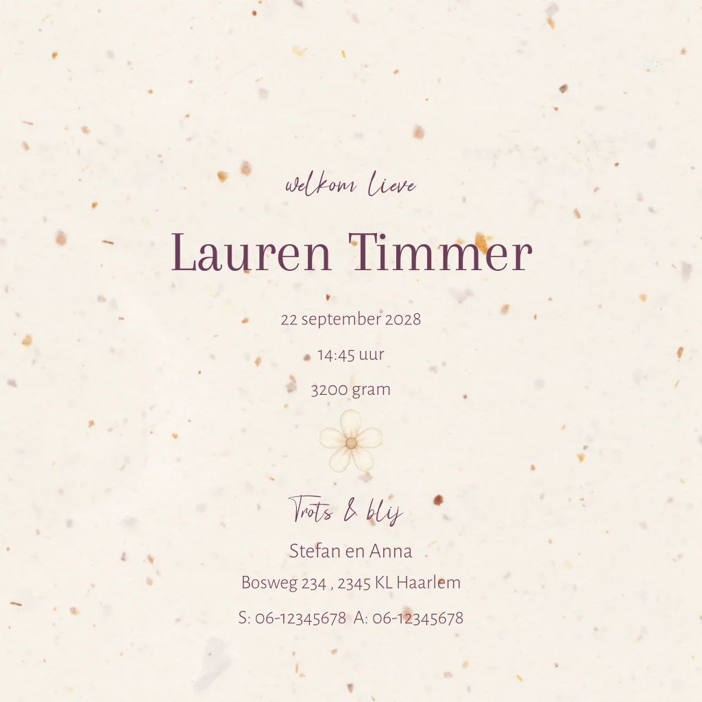 Duurzaam geboortekaartje meisje met gansje op echt tulpen papier