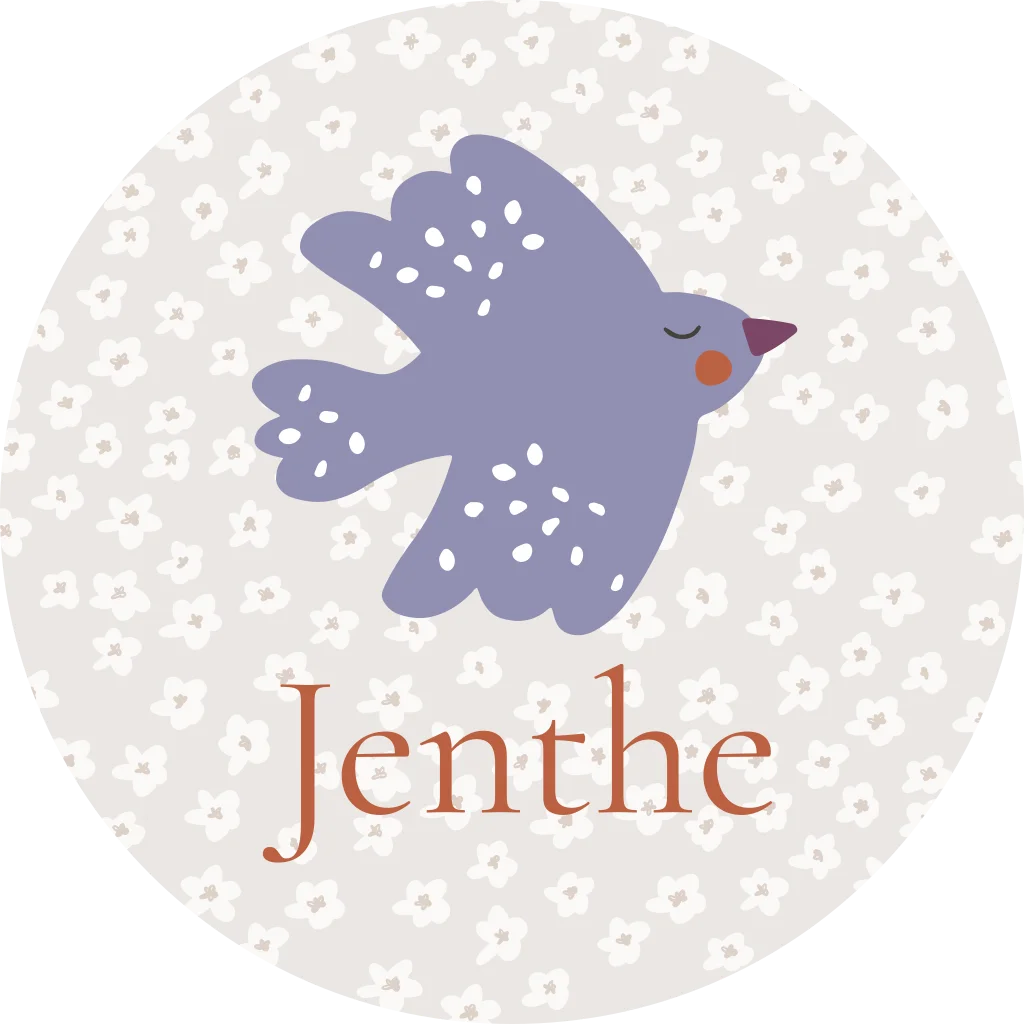 De sticker met vogel en bloemen achtergrond is mooi als doopsuiker versiering met de naam van jullie dochter. Deze past bij het geboortekaartje. Zo maak je eenvoudig een compleet geboorteconcept. Je kan zelf het ontwerp en de tekst eenvoudig aanpassen in de editor.