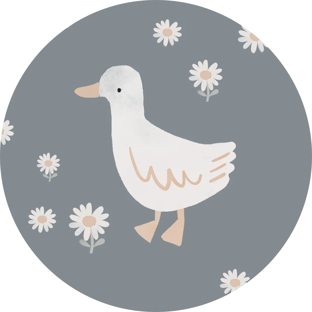 Originele sluitzegel met blauwe achtergrond, lief eendje en bloemen. Mooi passend bij het jongens geboortekaartje.