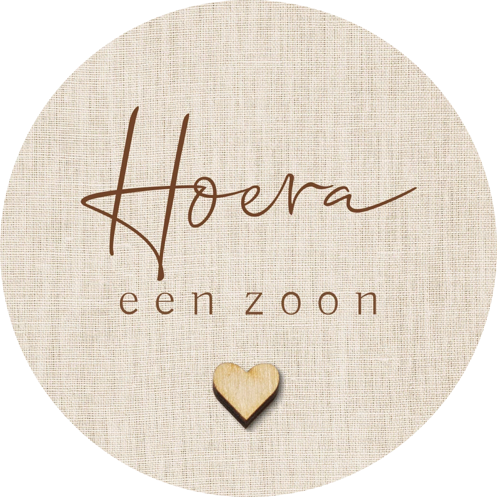 Minimalistisch stoere sluitzegel passend bij het geboortekaartje voor een jongen . Het houten hartje is gedrukt op een linnen achtergrond.