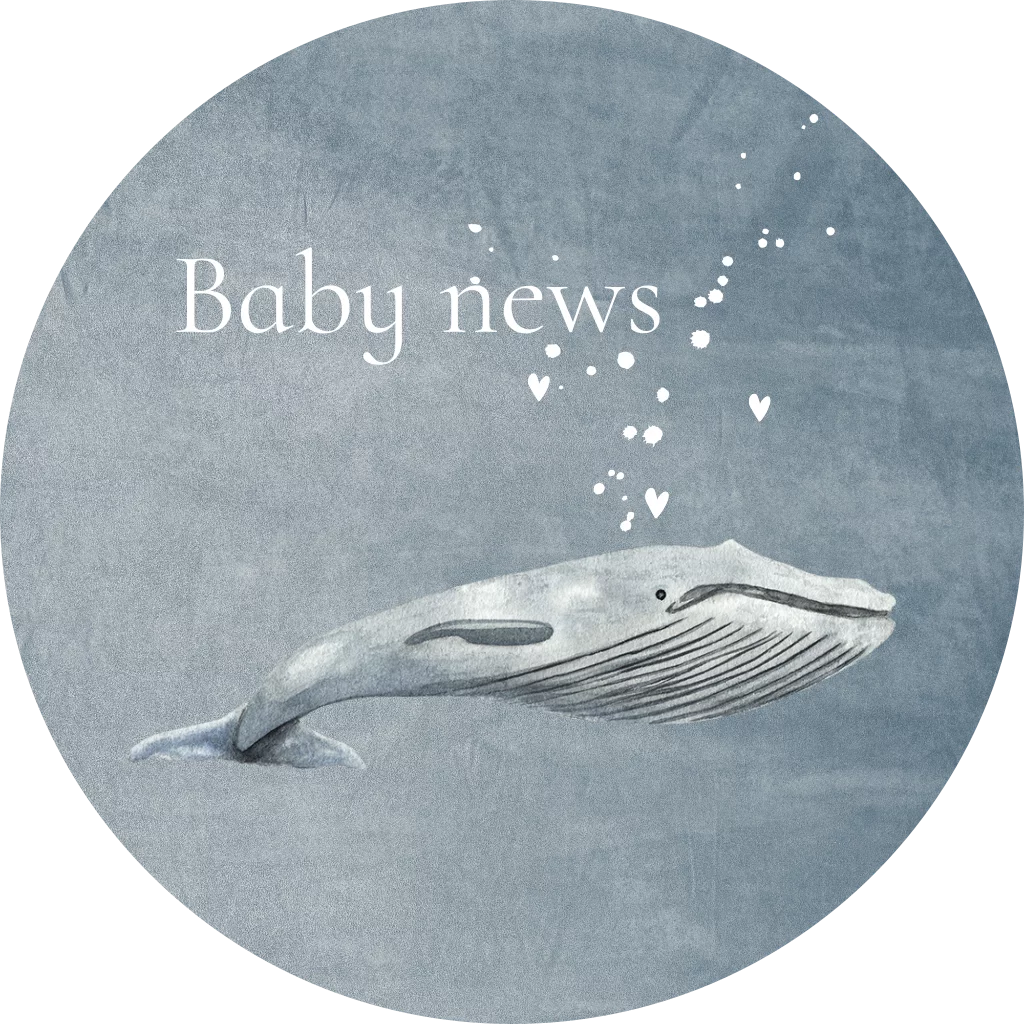Stoere sluitzegel voor een jongen met een walvis en een blauw velvet look achtergrond passend bij het geboortekaartje. Leuk met de Babynews tekst. je kan eenvoudig de tekst aanpassen op de sticker. Ook leuk als doopsuiker.
