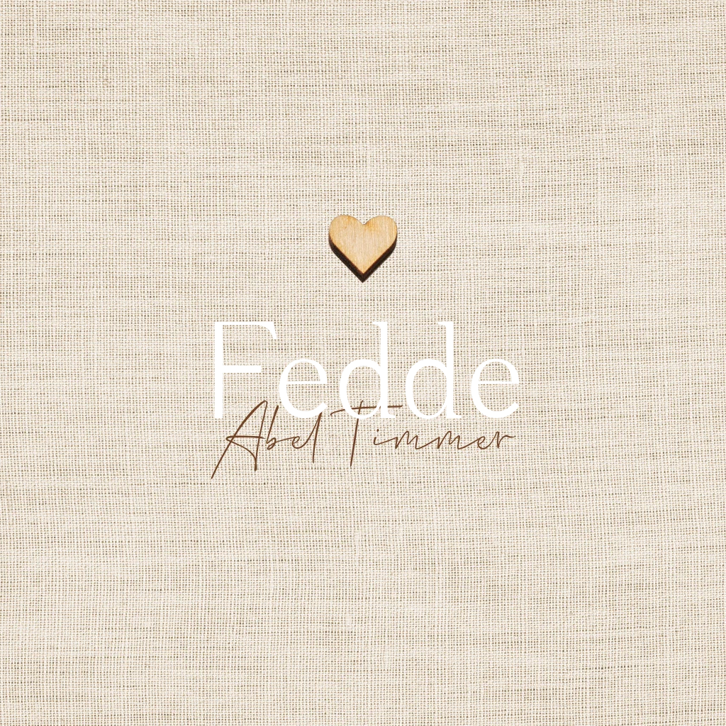 Klassiek geboortekaartje voor een jongen met linnenlook achtergrond en een echt houten hartje. De naam staat in goudfolie, dit kan je eenvoudig zelf aanpassen in de editor. Je kan een sample setje met houten elementjes bij de proefdruk bestellen en bij de oplage de hartjes los erbij bestellen. Door de plakstrip op de achterkant van het hartje is deze eenvoudig te bevestigen op het geboortekaartje.
