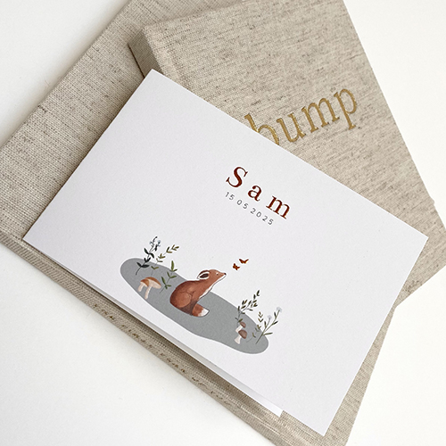 Origineel geboortekaartje jongen met vosje en hoogglans folie