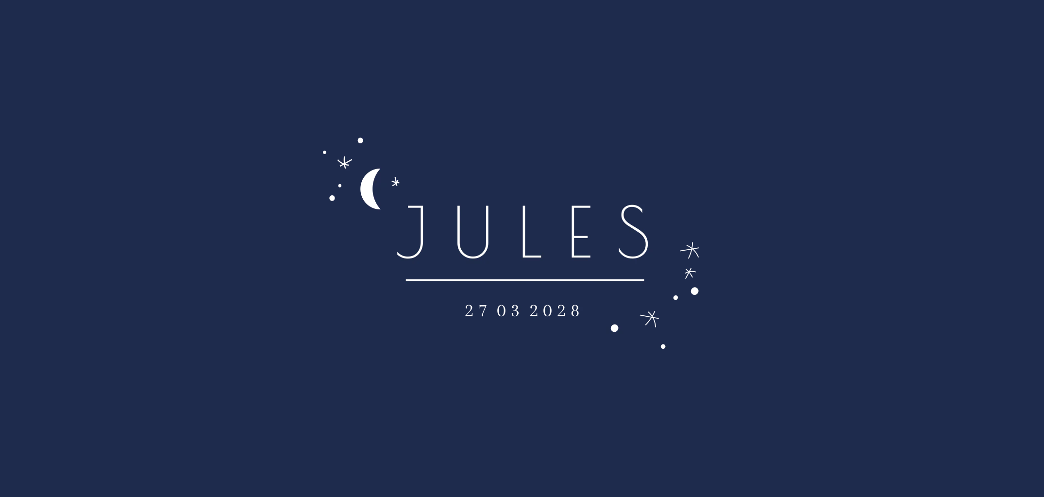Minimalistisch geboortekaartje ontwerp voor een jongen met donkerblauwe achtergroen en goudfolie. De geboortesymbooltjes op de achterkant in goudfolie zijn heel mooi ! Stoer met de donkerblauwe achtergrond.