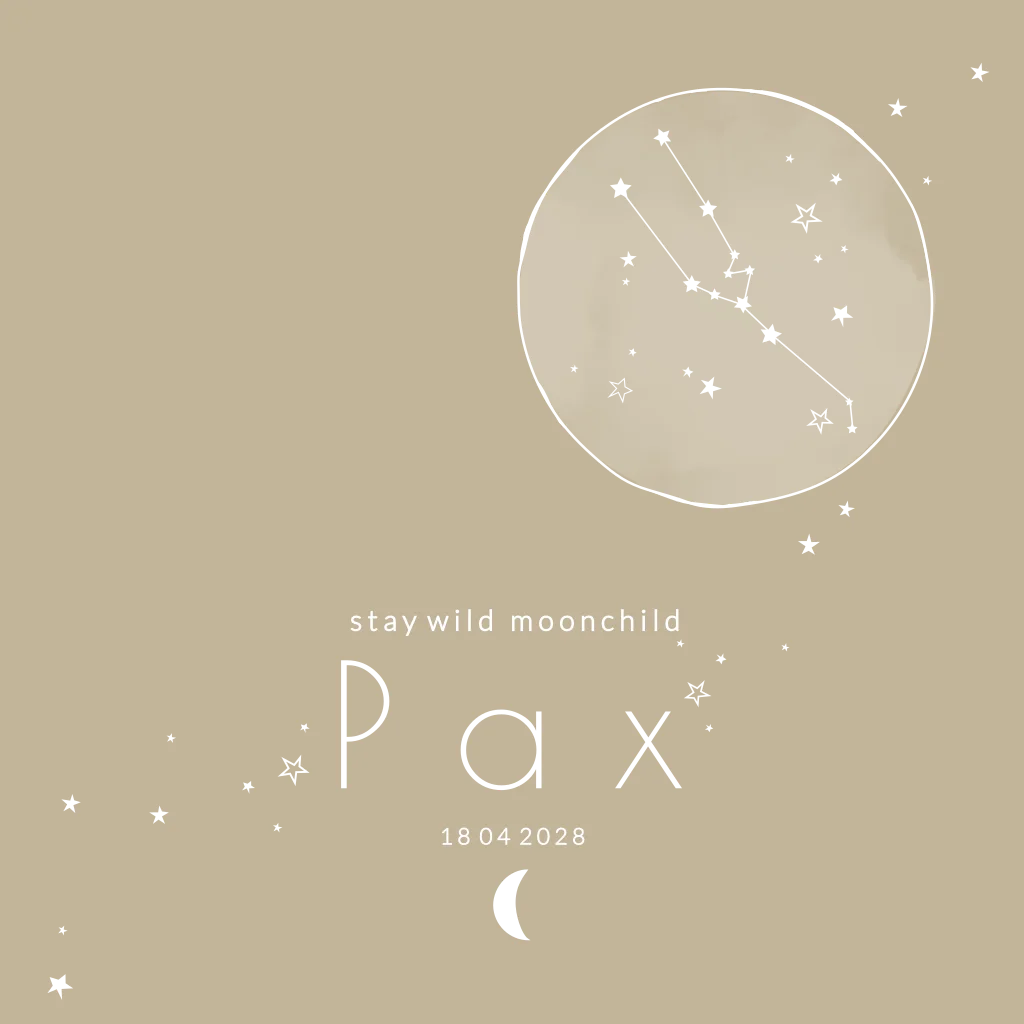 Neutraal geboortekaartje voor een jongen met goudfolie sterrenbeeld. plaats zelf het juiste sterrenbeeld van jullie kindje.