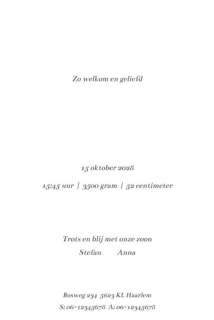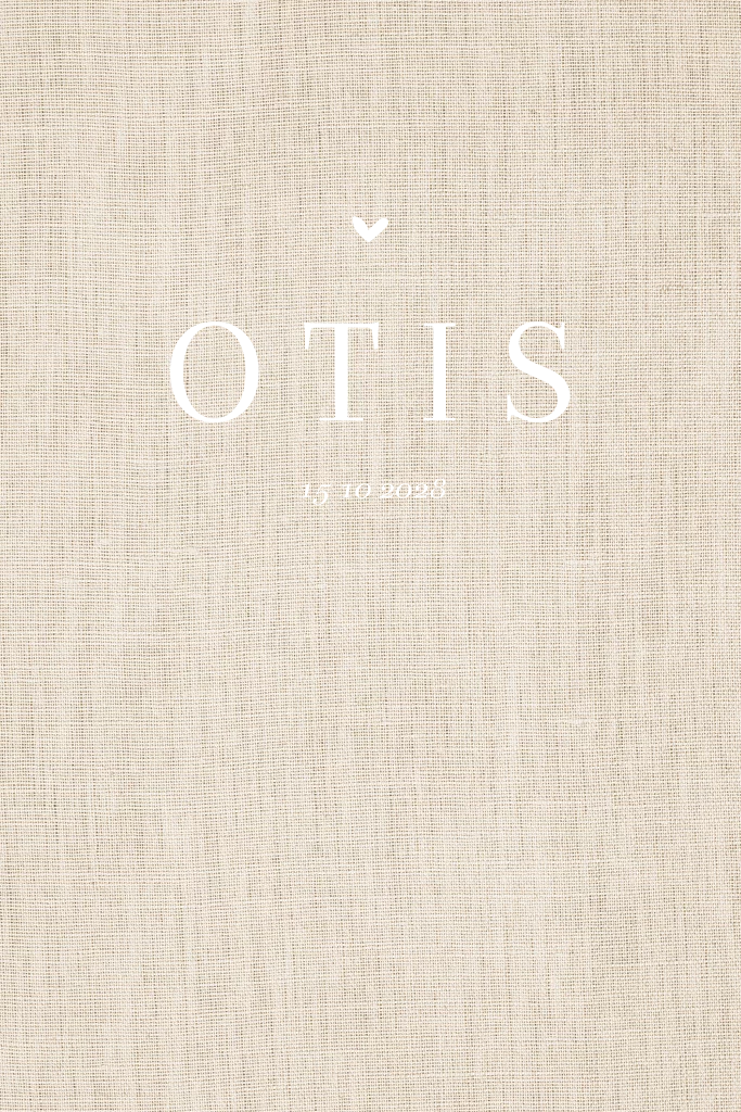 Stoer minimalistisch geboortekaartje voor een jongen met linnenlook achtergrond. Trendy neutraal ontwerp met de naam in hoogglansfolie , het hartje heeft net een andere kleur folie wat een extra luxe uitstraling aan dit kaartje geeft. Je kan eenvoudig zelf alle details, lettertype en kleur folie aanpassen in de online editor.