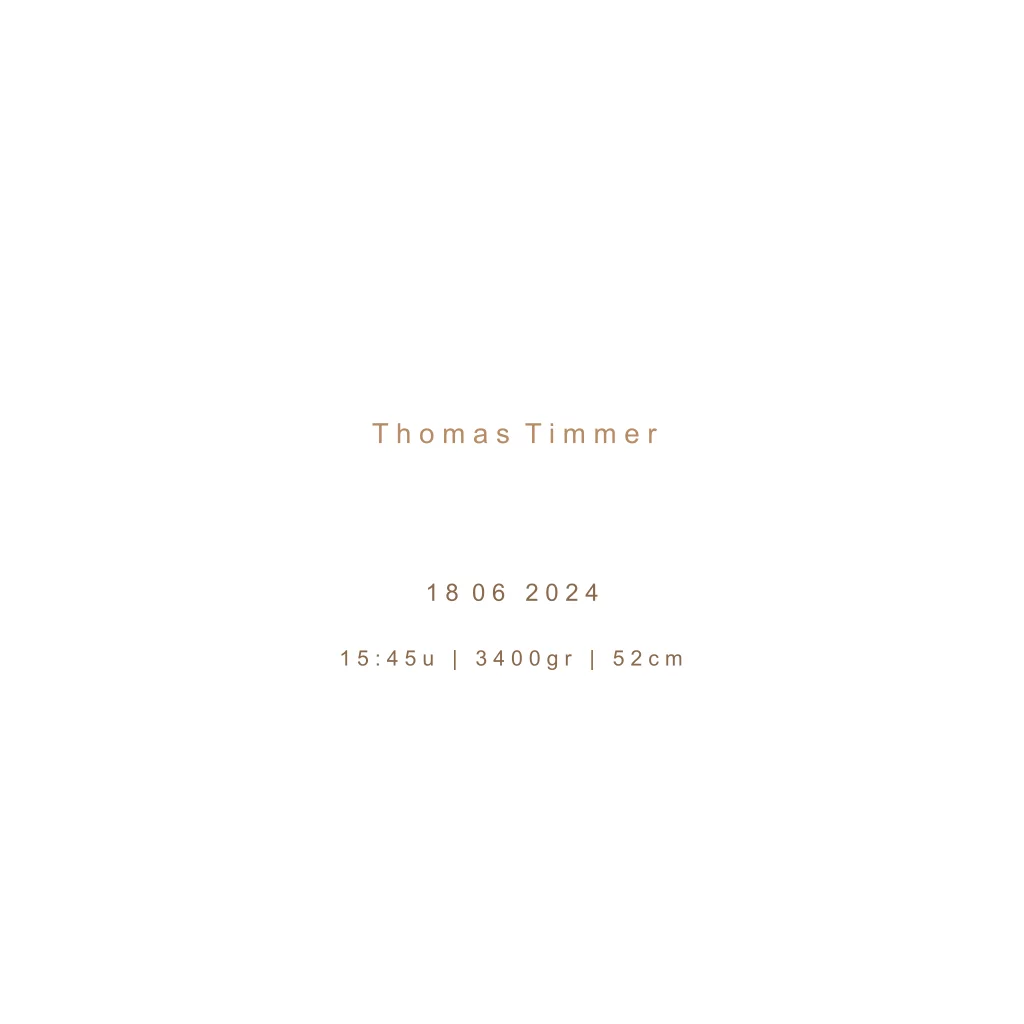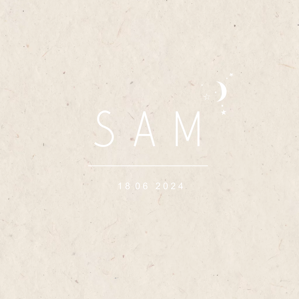 Minimalistisch ontwerp voor een jongen met strakke vormgeving. De goudfolie naam is een echte eye-catcher met trendy details zoals de sterretjes en de maan. De achtergrondkleur kan je naar smaak eenvoudig aanpassen.