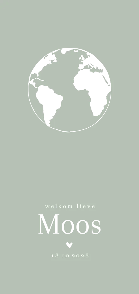De wereldbol in goudfolie als het middelpunt van dit verder minimalistische geboortekaartje voor een jongen. De achtergrondkleur is eenvoudig aan te passen. Graag wat meer details zoals een silhouet ? Eenvoudig toe te voegen vanuit de illustratie map in de ontwerptool. De naam van jullie kindje kan ook in folie.