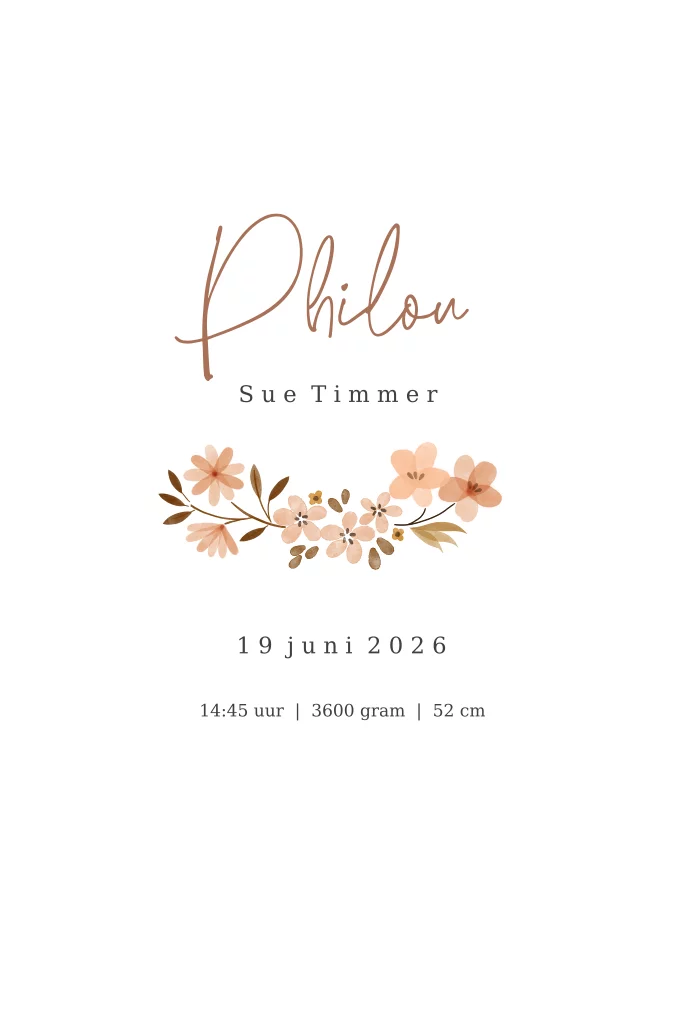 Lief geboortekaartje voor een meisje met waterverf floral illustraties in de vorm van de maan. Mooi met roséfolie details en babynaam. Op de binnenkant een lief gedichtje. Lekker zomers en fris !