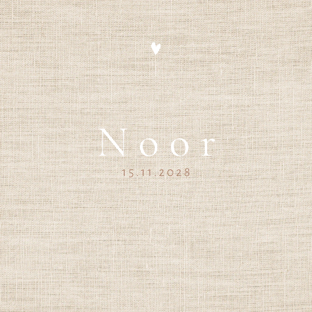 Minimalistisch klassiek geboortekaartje voor een meisje met goudfolie en linnen. Klassiek en neutraal kaartje geschikt voor een jongen en meisje. Je kan zelf de details en de folie kleur online aanpassen in de ontwerptool en met illustraties uit de mappen.