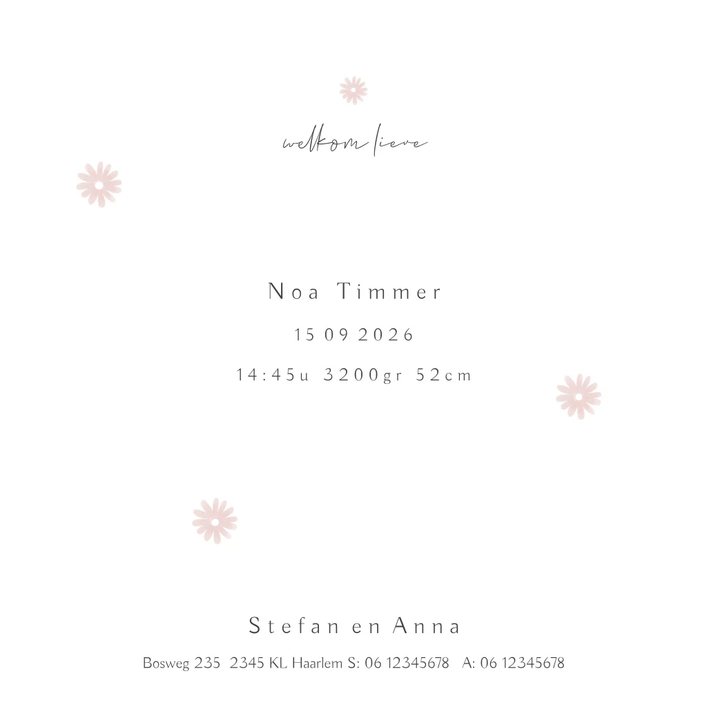 Geboortekaartje meisje met madeliefjes rosefolie en velvet