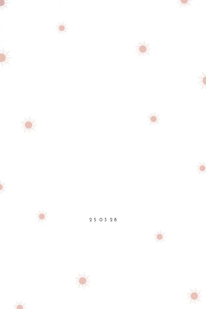Lief zomers geboortekaartje voor een meisje met de rosefolie zonnetje en mooi patroon van terra zonnetjes op de achtergrond. Je kan die aanpassen naar een andere kleur of verwijderen.