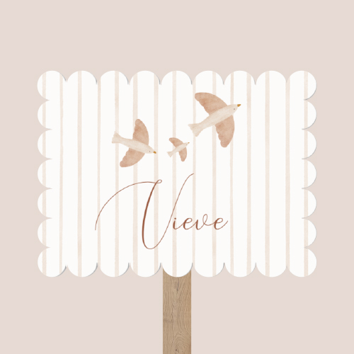 Een mooie manier om de geboorte van jullie dochter in de tuin aan te kondigen. Het ontwerp past bij het geboortekaartje en is lief en neutraal.