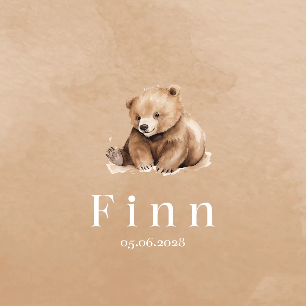 Geboortekaartje jongen met een beer op neutrale achtergrond