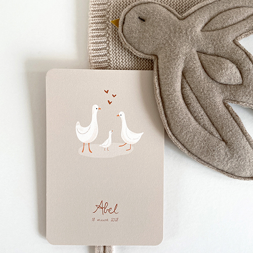 Geboortekaartje jongen met gansje in neutrale kleuren