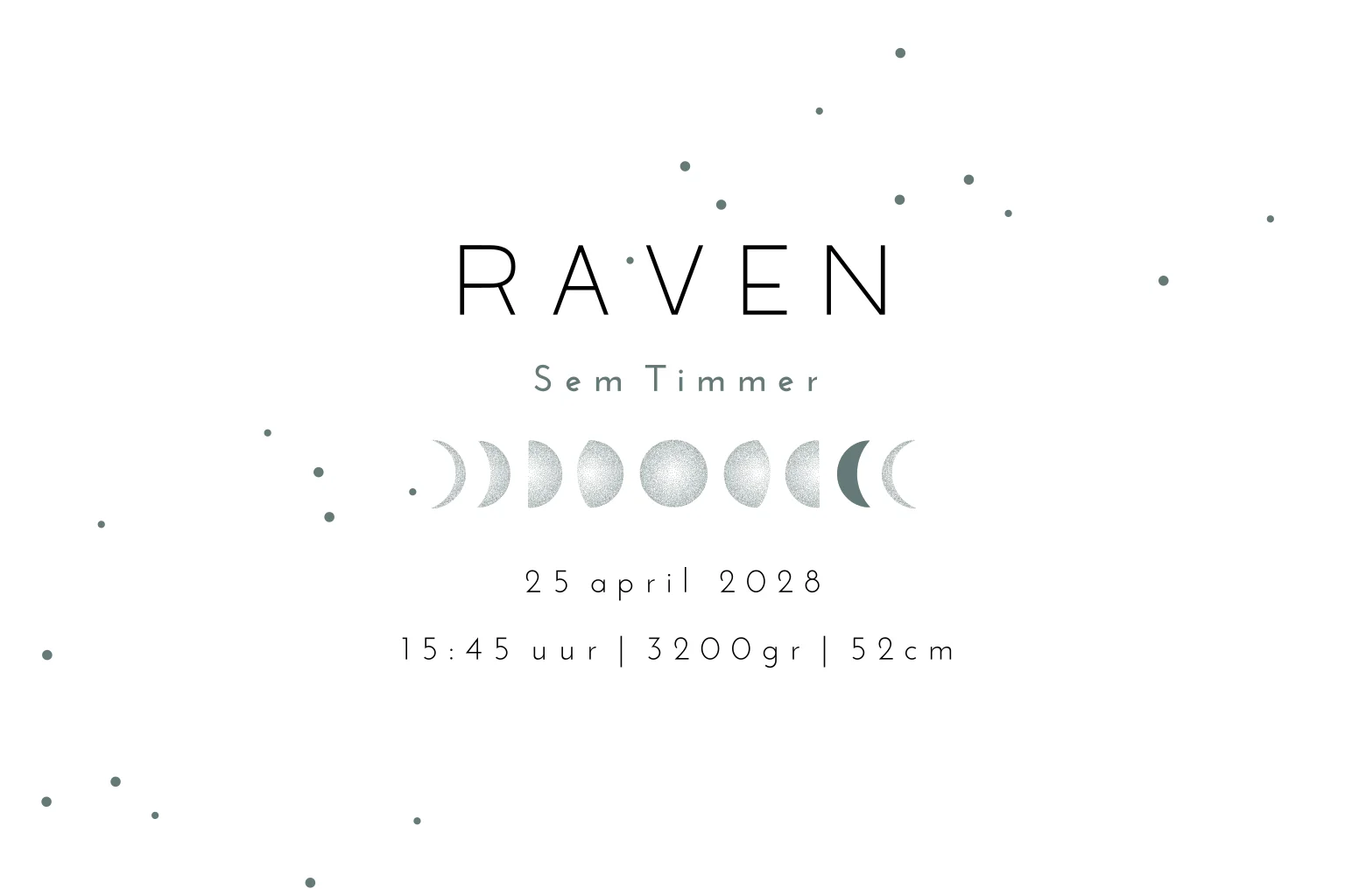 Geboortekaartje jongen met de maanstand van de geboortedag op de binnenzijde. Het sterrenbeeld op de voorkant is eenvoudig aan te passen naar de juiste maand. liever ander formaat of folie? neem gerust even contact op. papier handmade look achtergrond