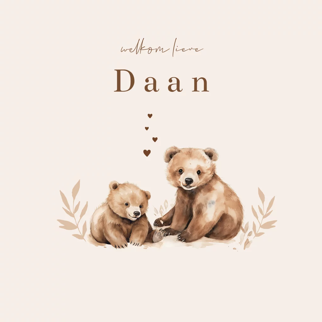 Neutraal geboortekaartje jongen met beertjes broertje zusje