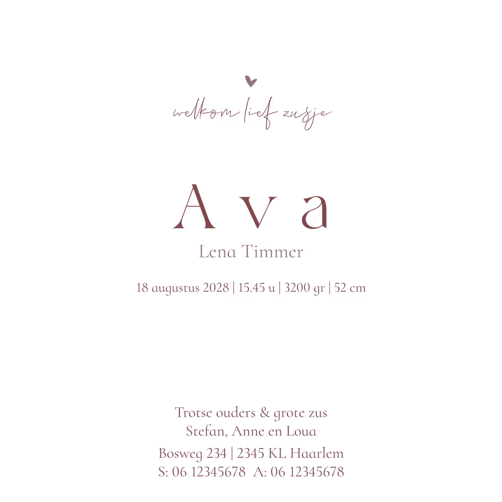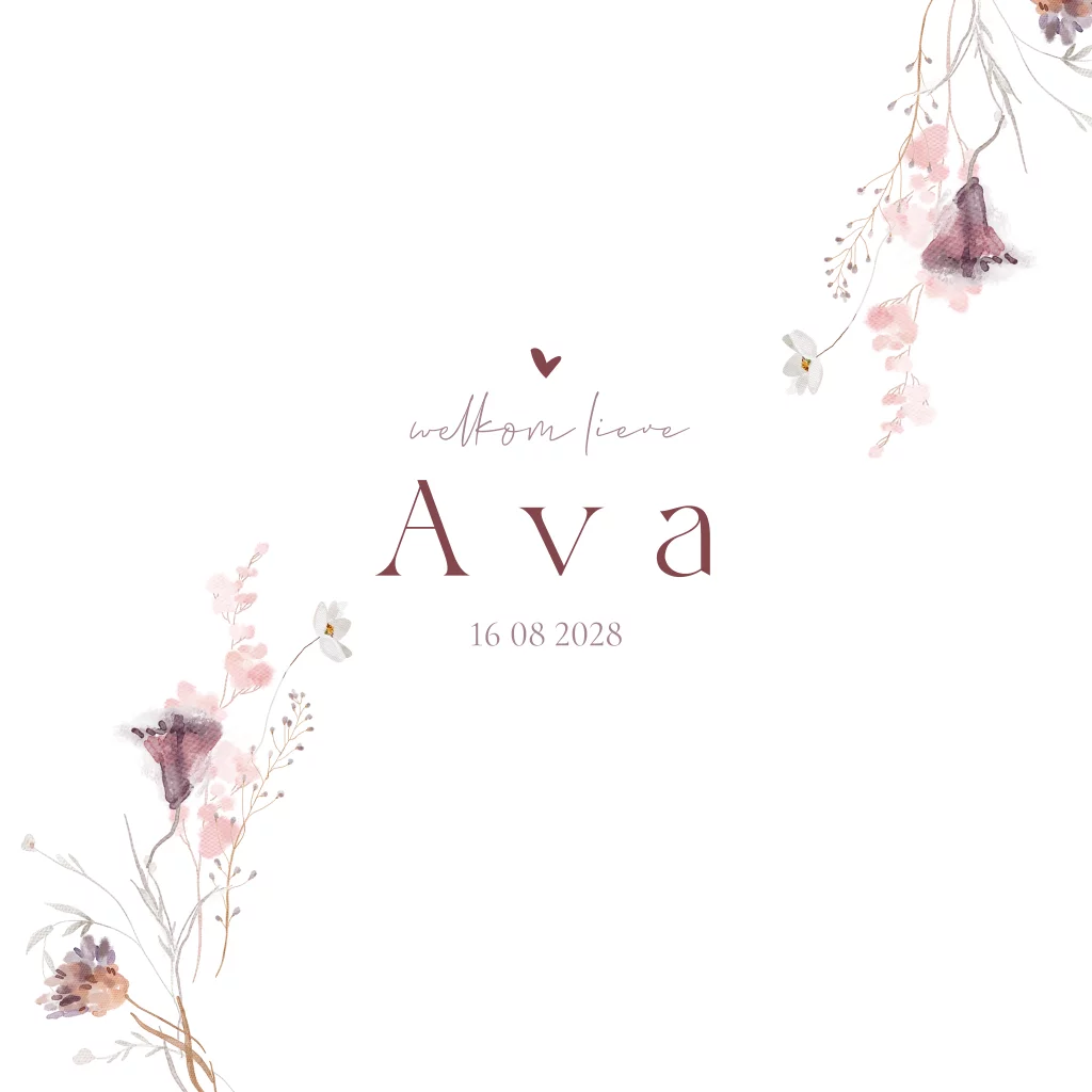 Geboortekaartje voor een meisje met mooie handgetekende bloemetjes. Je kan eenvoudig zelf folie toevoegen aan het kaartje. Wil je liever een ander formaat , dan kan dat natuurlijk ook ! Het babykaartje van jullie dochter kan je extra mooi verzenden met een sluitzegel in dezelfde stijl. Leuk om een bijpassende poster te bestellen voor de babykamer. En een raambord voor een feestelijke geboorteaankondiging.