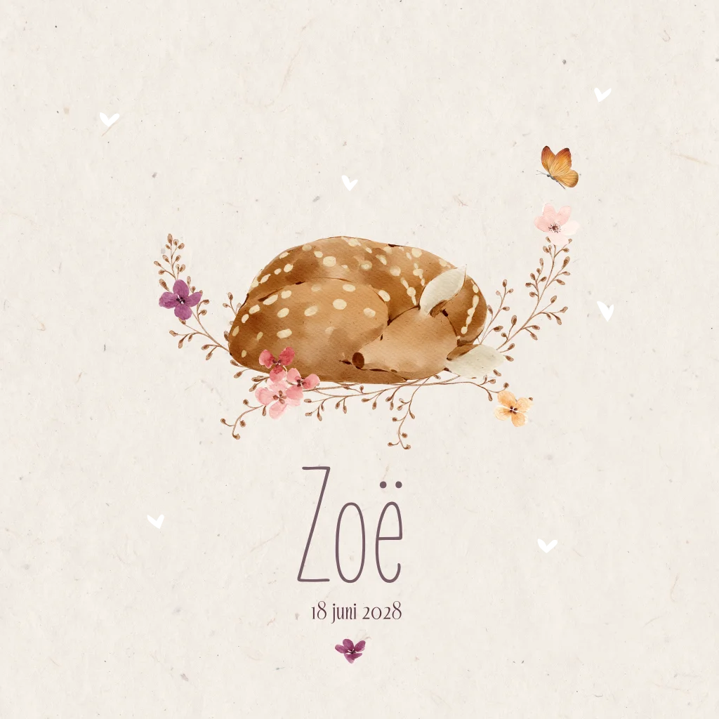 Geboortekaartje meisje met hertje , vlinder en bloemen