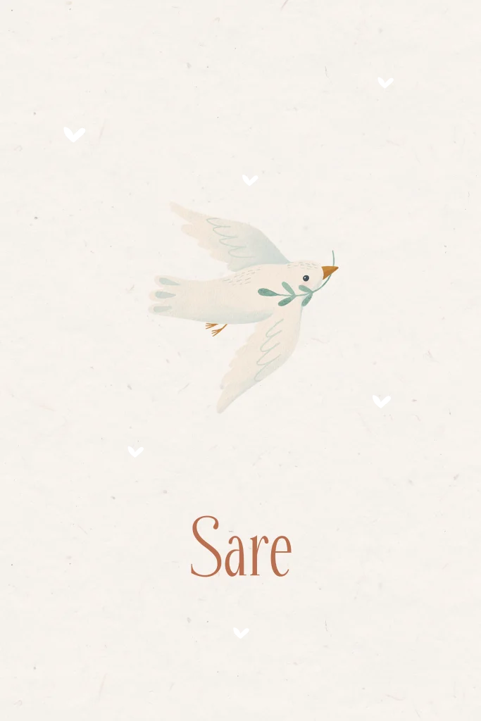 Dit geboortekaartje voor een meisje met vogel heeft een zachte en rustige uitstraling. De lieve vogel en de kleine hartjes in goudfolie geven het kaartje een zomerse uitstraling, terwijl de neutrale kleuren zorgen voor een tijdloos kaartje. Het ontwerp blijft eenvoudig en in balans, waardoor de naam mooi naar voren komt. Een lief en neutraal geboortekaartje met dieren, dat past bij een bijzonder meisje.