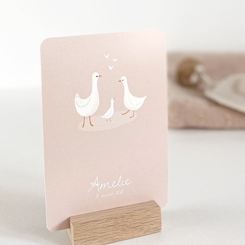 Geboortekaartje meisje met gansje en hartjes