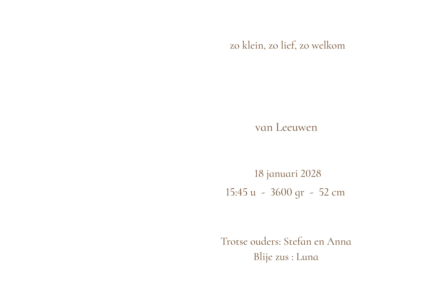 Lief geboortekaartje voor een meisje met de naam en hartjes in goudfolie op linnen. Combineer met een echt zijden lint waarmee je een strikje kan maken om het geboortekaartje. Je kan dit lint los meebestellen. Tip: kies voor een sample setje bij de proefdruk zodat je kan opmeten hoeveel cm je nodig hebt voor de strik. Het ontwerp is speciaal op maat gemaakt, de teksten zijn geplaatst zodat er ruimte is voor de strik .Het lint kan je los bij het geboortekaartje bestellen, je hebt ongeveer 50 cm nodig per kaartje afhankelijk van de grootte van je strik ! De meisjesnaam staat in goudfolie gedrukt, dit kan je eenvoudig zelf aanpassen naar rosefolie. Met een mooie lijntekening op de binnenkant.