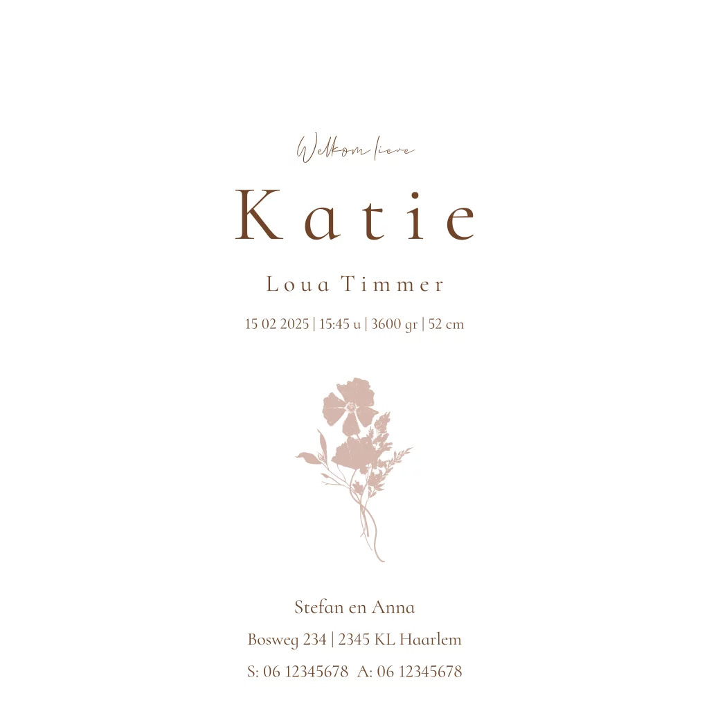 Bijzonder mooi geboortekaartje voor een meisje met een linnenlook achtergrond en bloemen. Neutrale klassieke uitstraling. Wil je graag met folie ? dat is eenvoudig aan te passen in de editor. Met lief geboortegedichtje op de binnenkant. Maak de aankondiging compleet met een raambord. Een poster voor in de babykamer en een kraambezoekboek in dezelfde stijl kan je ook via de website bestellen.