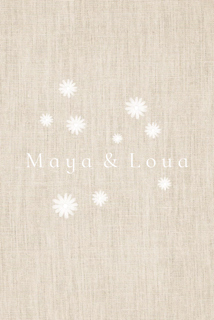 Een origineel geboortekaartje voor tweeling meisjes met goudfolie naam en bloemen. De linnen achtergrond geeft een luxe klassieke uitstraling aan dit lieve geboortekaartje. Je kan een bijpassend raambord, raamvlag, kraamfeest boek, sluitstickers, poster in dezelfde stijl bestellen.