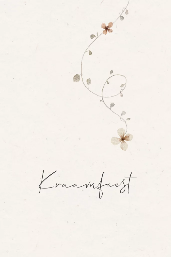 Kraamfeest uitnodiging met bloemen voor een meisje passend bij het geboortekaartje. De teksten zijn eenvoudig zelf aan te passen.