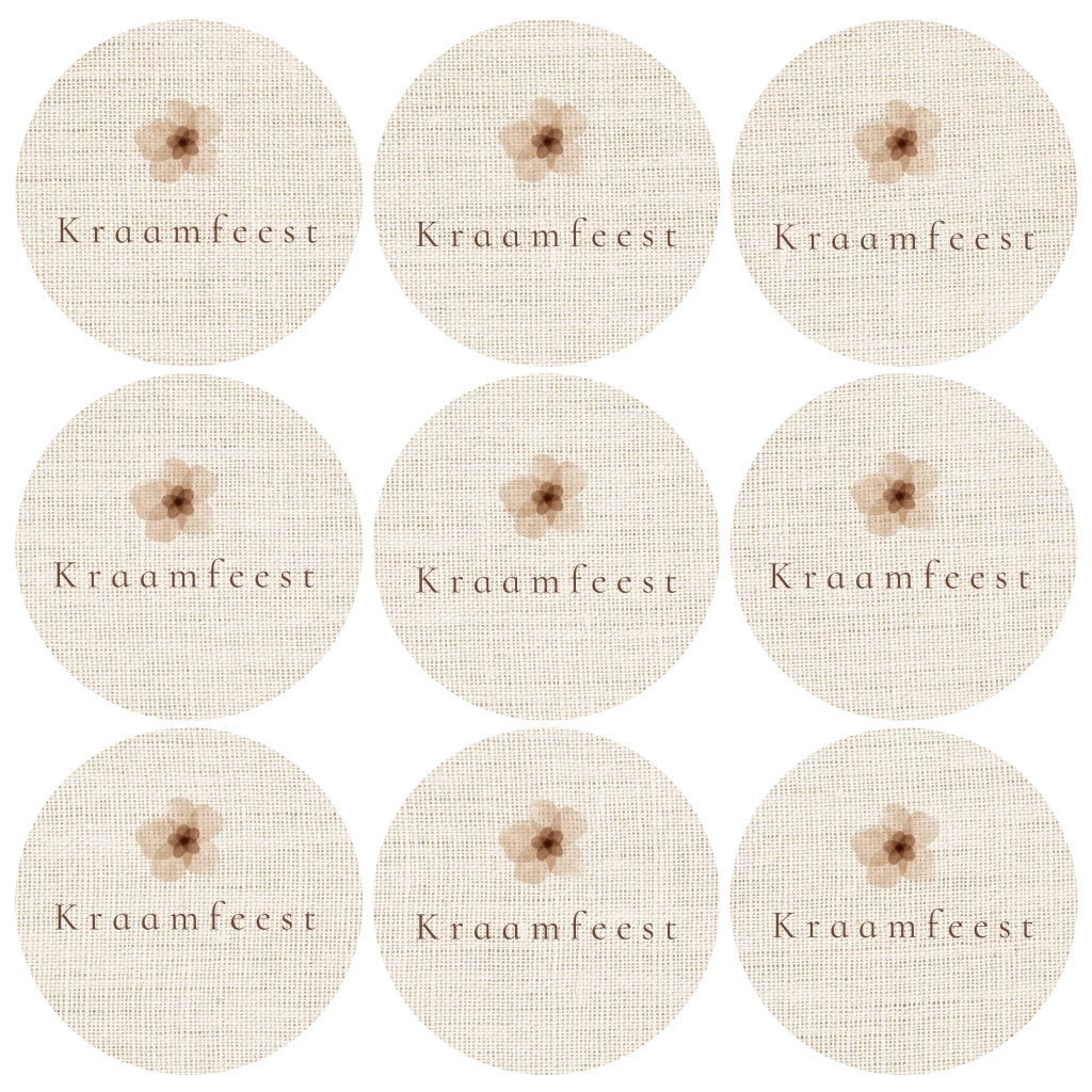 Kraamfeest uitnodiging in originele ronde vorm met bloem en een linnen achtergrond. Voor een dochter passend bij het geboortekaartje voor een meisje. De labelkaart heeft 9 ronde gestanste kaartjes met een diameter van 6,8 cm. Je kan het kaartje met een leuke paperclip bevestigen aan het geboortekaartje. De teksten zijn eenvoudig zelf aan te passen