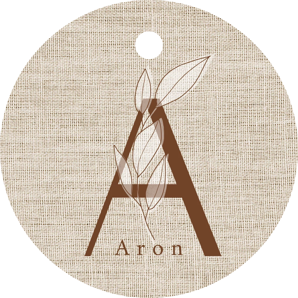 Een origineel rond labeltje met een initiaal en linnenlook achtergrond voor een jongen. Perfect voor doopsuiker versiering of te combineren met een minimalistisch geboortekaartje. Je kan dit ronde labeltje volledig zelf aanpassen met de eenvoudige online editor.