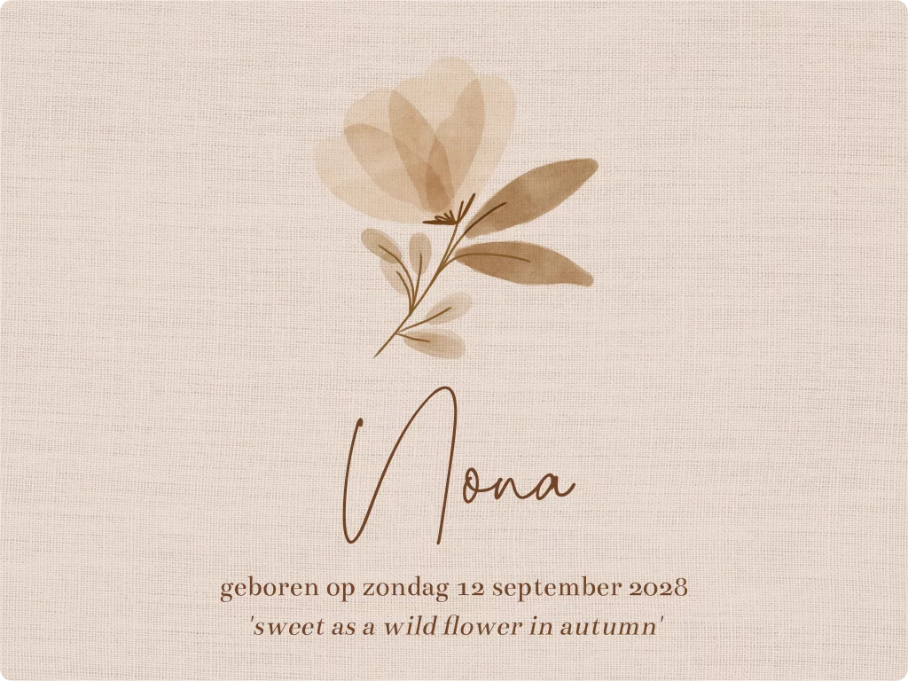 Memorybox voor een meisje met een bloem en de babynaam en mooie tekst. De box heeft een linnenlook-look achtergrond , je zal hierin ook de houten kist structuur zien. In de memorybox kan je herinneringen bewaren van de zwangerschap of babytijd zoals het eerste babypakje, rammelaar en natuurlijk het geboortekaartje. De box is naar wens te personaliseren in onze online editor. Deze grenen houten box heeft een afmeting van 40x30cm breed en 13cm hoog en heeft een handgreep aan elke kant. Leuk om jezelf of een ander cadeau te geven. Tip | vraag de box als kraamcadeau