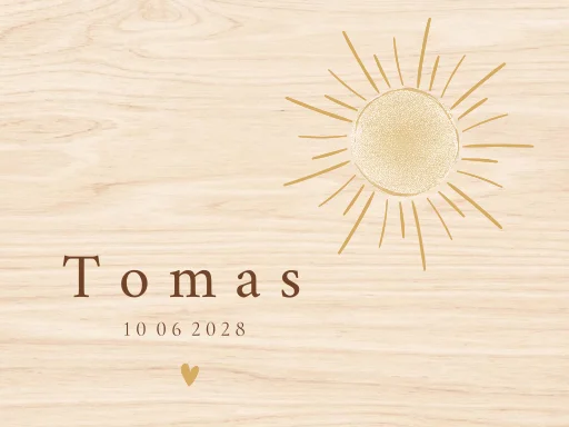 Neutrale baby memorybox met een zon voor een jongen of een meisje. Mooi en origineel in de stijl van het geboortekaartje. De houten herinneringskist is perfect om de waardevolle eerste babyspulletjes in te bewaren. En de mooie momenten van de zwangerschap of babytijd. De box is leuk voor jezelf of om als kraamcadeau te geven. Je kan zelf het ontwerp online met de editor aanpassen. Deze grenen houten box heeft een afmeting van 40x30cm breed en 13cm hoog en heeft een handgreep aan elke kant.