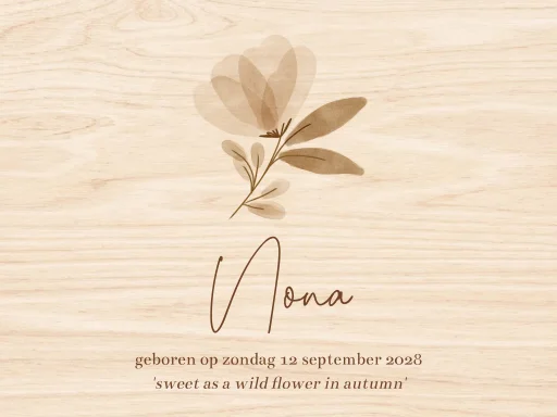 Memorybox voor een meisje met een bloem en de babynaam en mooie tekst. In de stijl van het geboortekaartje. Liever een andere bloem? Je kan het ontwerp eenvoudig aanpassen met afbeeldingen in de editor. In de memorybox kan je herinneringen bewaren van de zwangerschap of babytijd zoals het eerste babypakje, rammelaar en natuurlijk het geboortekaartje. De box is naar wens te personaliseren in onze online editor. Deze grenen houten box heeft een afmeting van 40x30cm breed en 13cm hoog en heeft een handgreep aan elke kant. Leuk om jezelf of een ander cadeau te geven. Tip | vraag de box als kraamcadeau