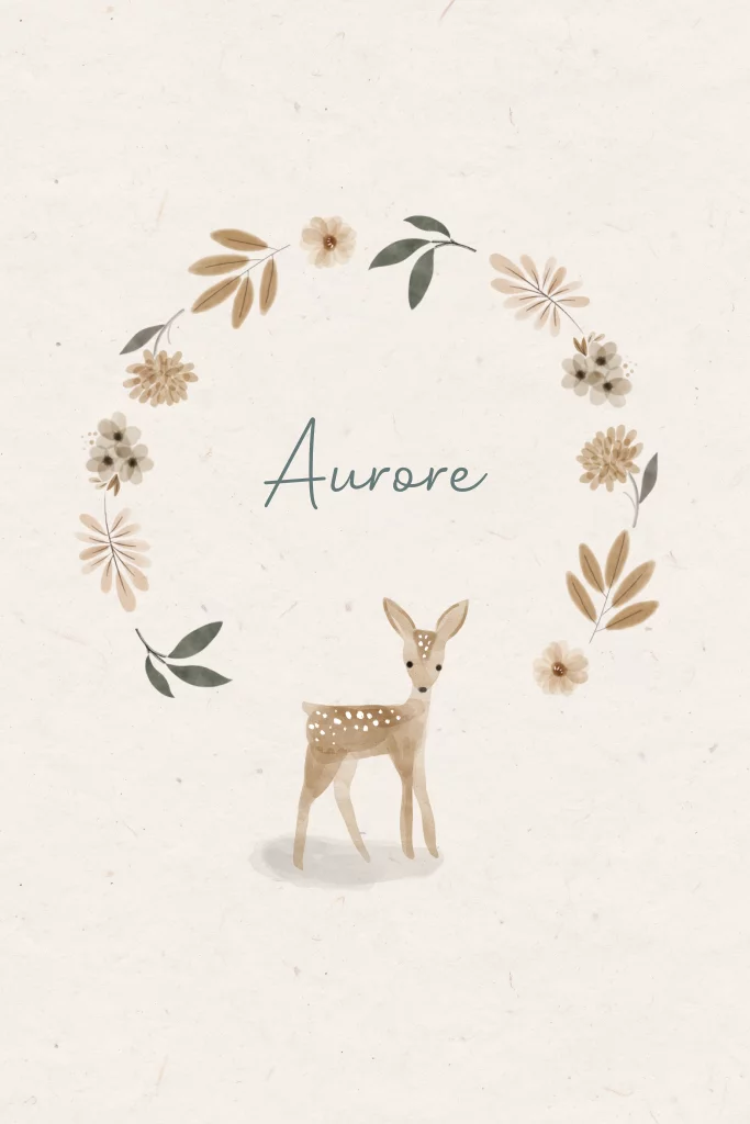 Mooie poster voor de babykamer passen bij het geboortekaartje met en hertje en bloemen. Tip: vraag deze poster als kraamcadeautje ! Je kan de tekst, de kleur van de achtergrond en de details zelf aanpassen. Een originele versiering boven het wiegje.