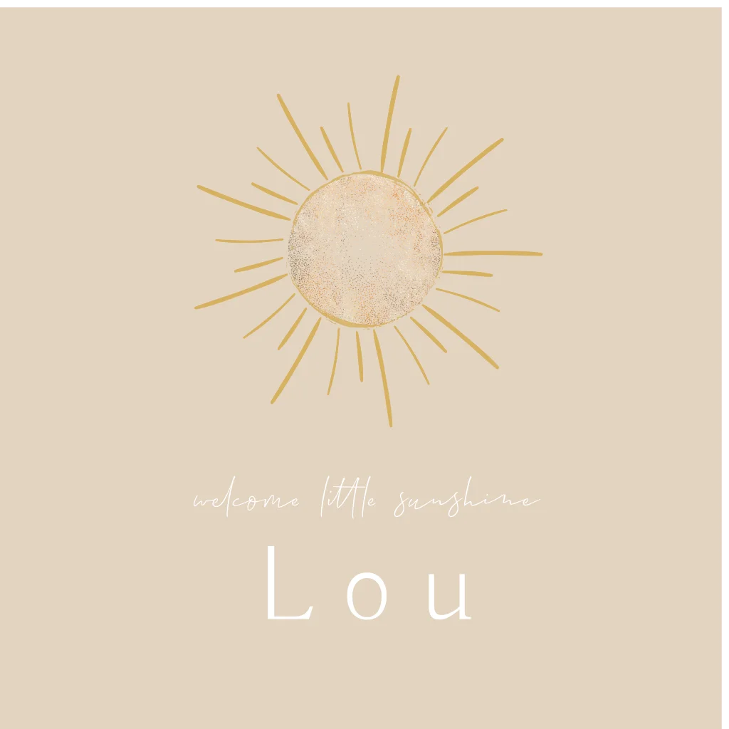 Kondig de geboorte van jullie zoon aan met minimalistische raambord met een zon. Het geboortebord kan gemakkelijk bewerkt worden in onze online editor. Je maakt één zijde op in de editor en dit wordt vervolgens op twee zijdes gedrukt.