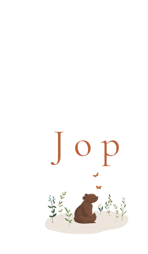 Hippe geboortevlag om de geboorte van jullie zoon aan te kondigen. Met lief beertje en bloemen in dezelfde stijl als het geboortekaartje. Pas de vlag naar wens aan in onze online opmaaktool.