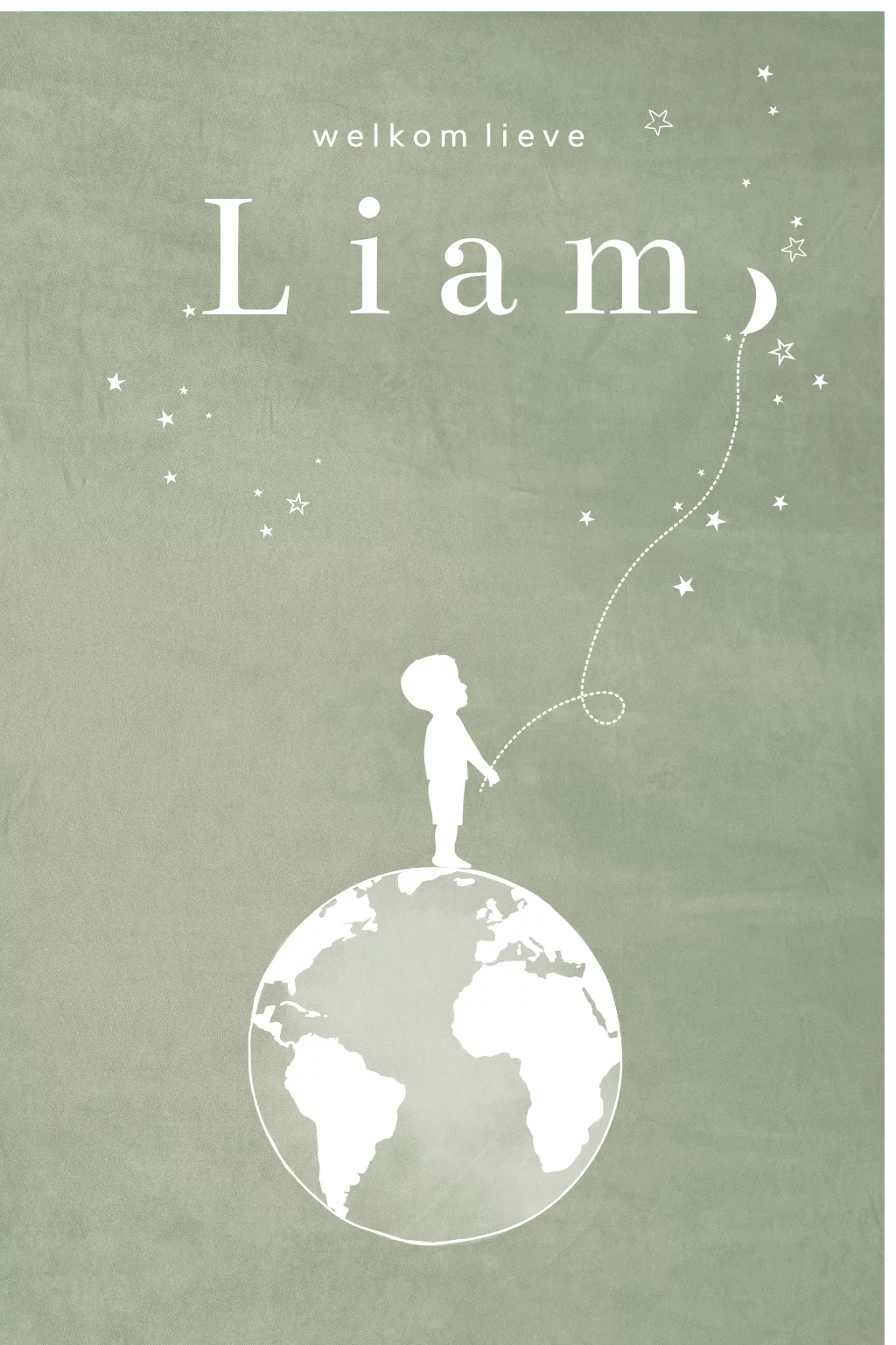 Kondig de geboorte van jullie zoon aan met stoer raambord met een wereldbol en jongen silhouet. Het geboortebord kan gemakkelijk bewerkt worden in onze online editor. Je maakt één zijde op in de editor en dit wordt vervolgens op twee zijdes gedrukt.