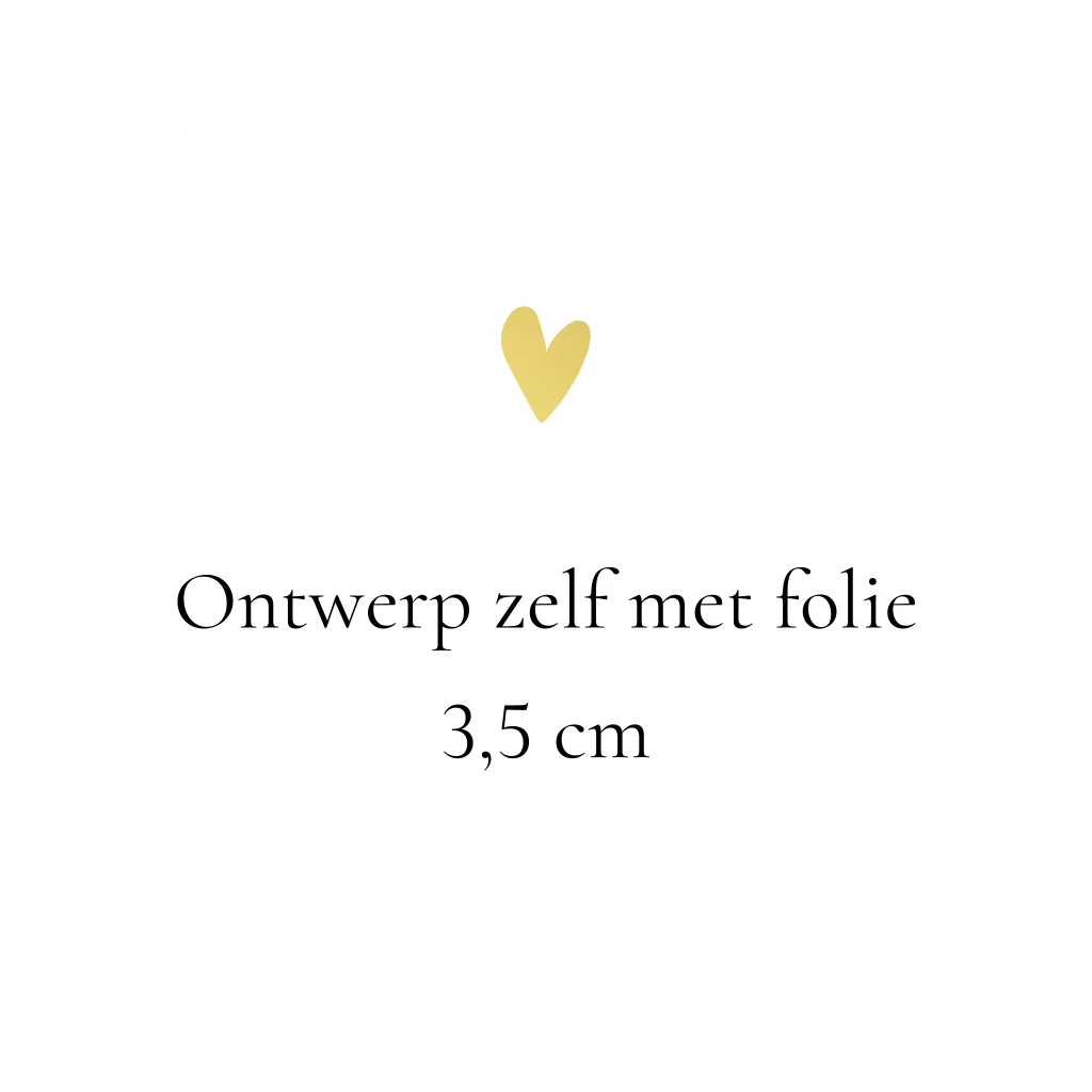 Ontwerp zelf je sluitzegel met folie. je hebt keuze uit goud, hoogglans folie, rose of zilver folie De sluitstickers hebben een diameter van 35 mm en worden geleverd op vellen van 25 stuks.