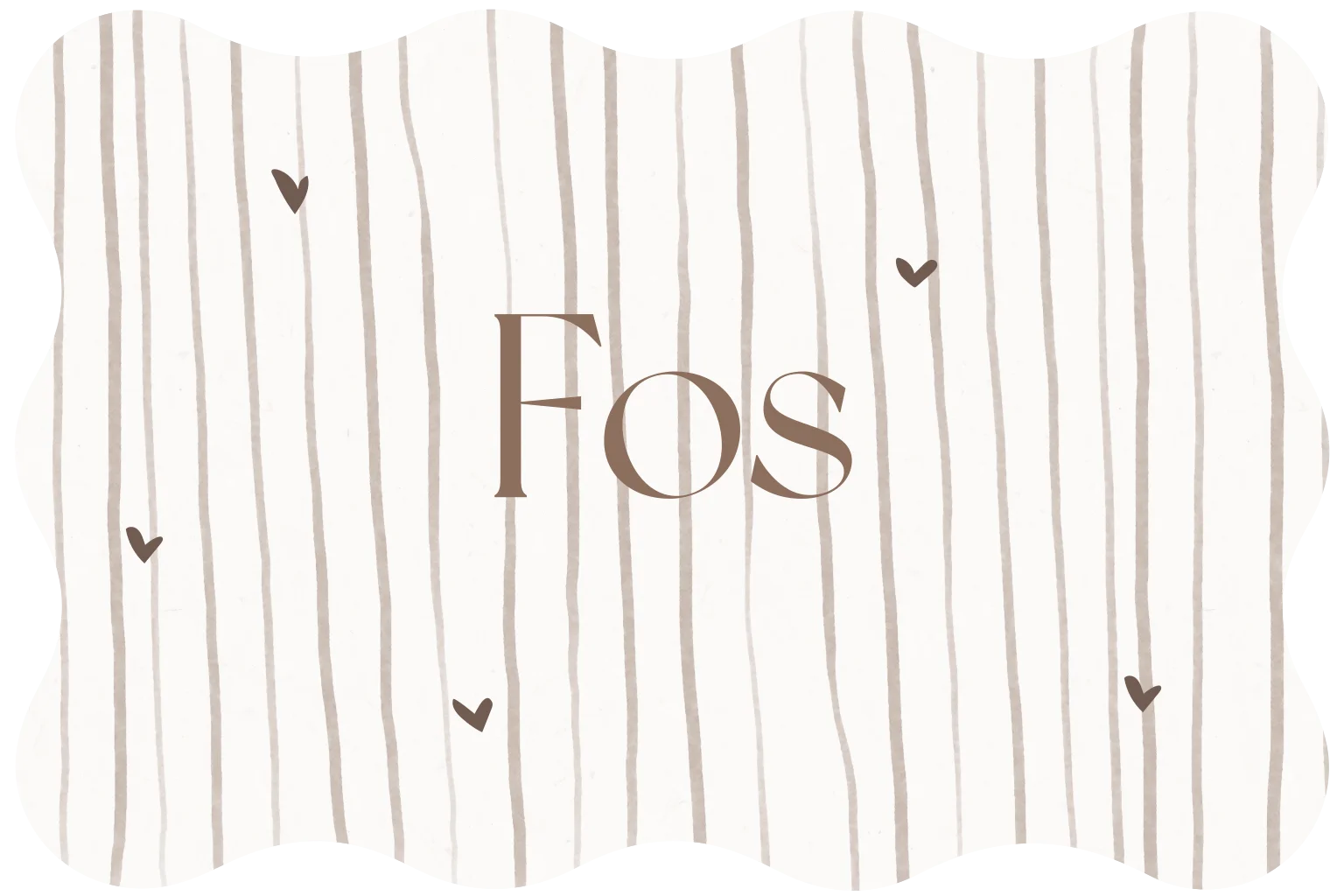 Dit stoere geboortekaartje voor een jongen met strepen heeft een rustige basis en een originele golfvorm. De strepen in neutrale kleur geven het kaartje karakter, terwijl de naam en kleine hartjes in hoogglansfolie zorgen voor een origineel detail. De achterkant is minimalistisch en uitgevoerd in een neutrale uni taupe kleur, waardoor het geheel mooi in balans blijft. Een stoer en hip geboortekaartje dat opvalt, zonder druk te worden.