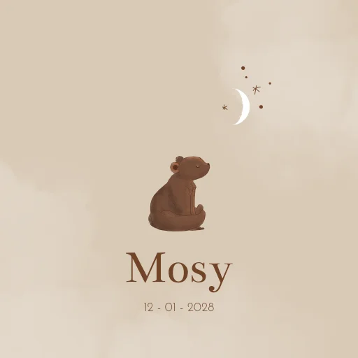 Lief geboortetegeltje voor een jongen met een beertje en sterretjes en een maan. Je kan zelf het tegeltje personaliseren.