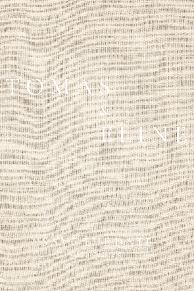 Save the date minimalistisch klassiek linnenlook met goudfolie